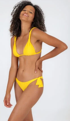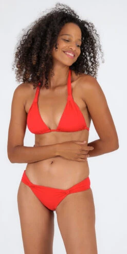 Textured Coral Side-tie Brazilian Bikini With A Halter Top – Set Dots-tabata Tri-mel Italy