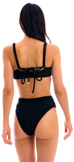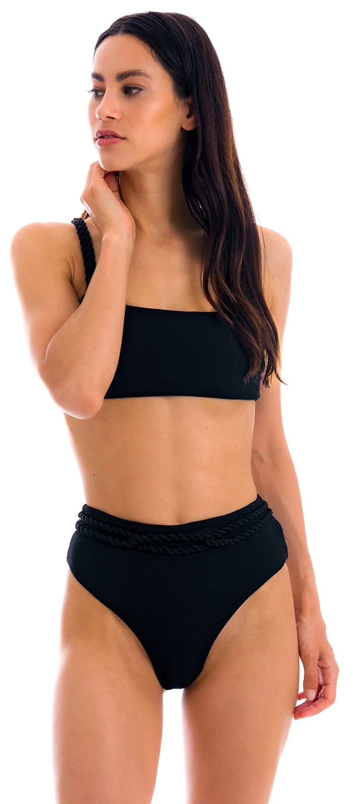 Description Black textured high waist bikini bottom with twisted rope – SET ST-TROPEZ-BLACK RETO HOTPANT-HIGH Rio de Sol