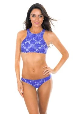 Description Blue printed crop top bikini with racer back – BLUEJEAN SPORTY Rio de Sol