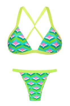 Description Fixed triangle bikini with green borders – MERMAID TRI Rio de Sol