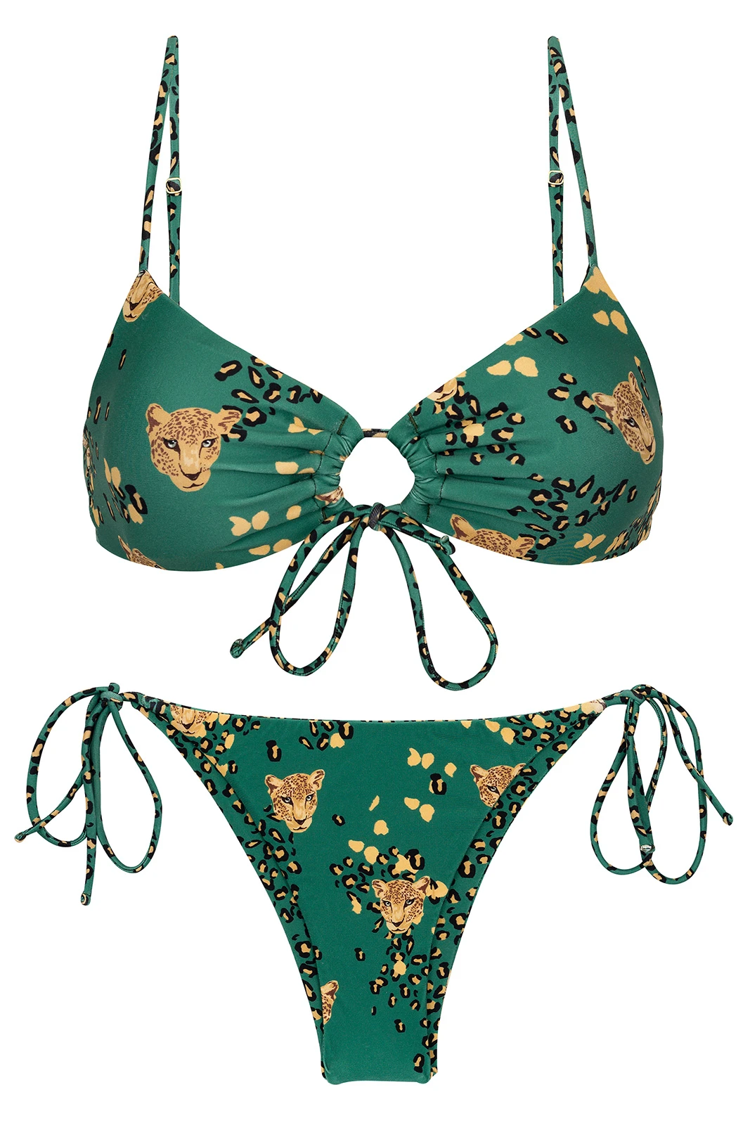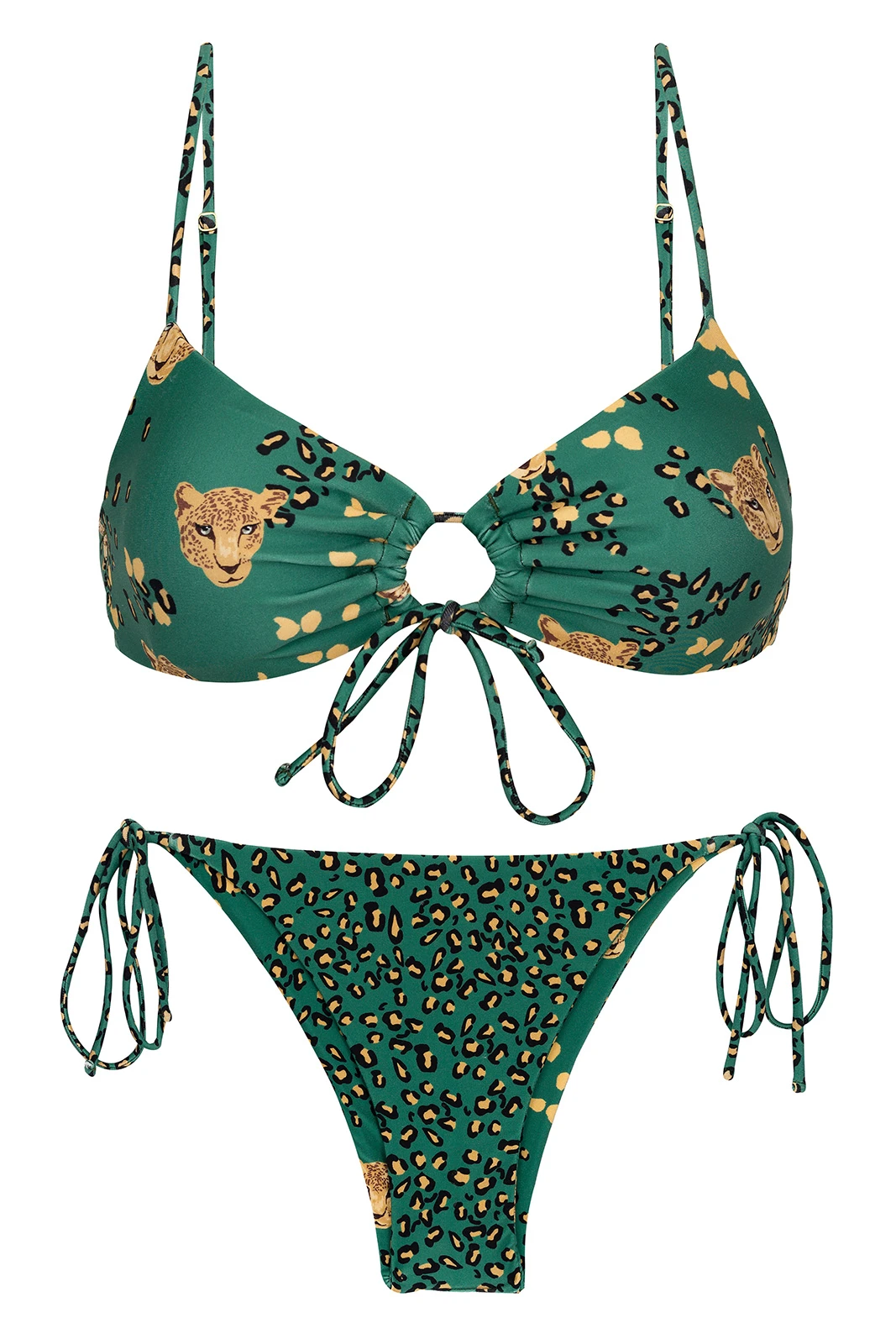 Description Green leopard print Brazilian bikini with front-tie top – SET ROAR-GREEN MILA IBIZA Rio de Sol