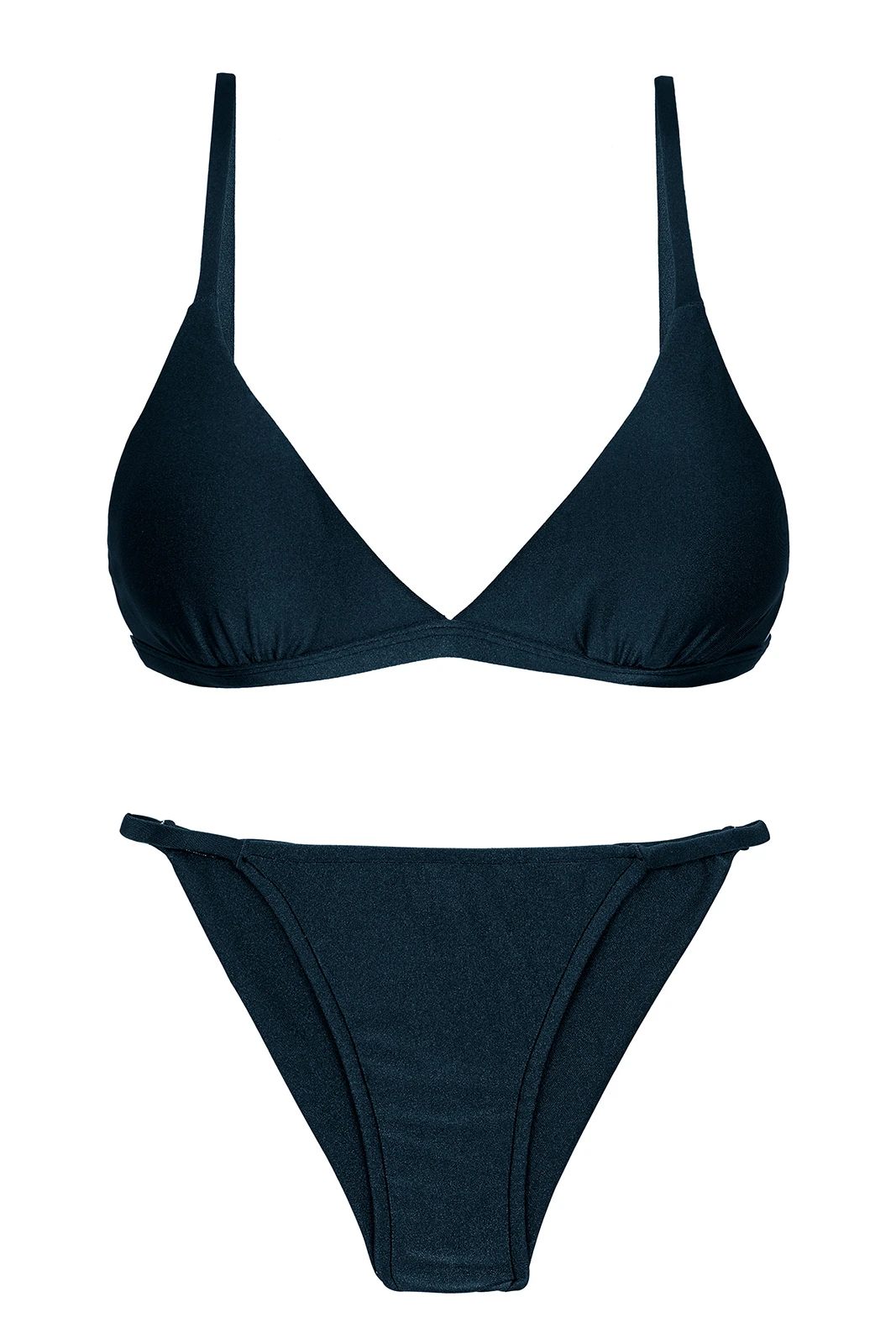 Description Iridescent midnight blue cheeky Brazilian bikini with thin sides – SET SHARK TRI-FIXO CHEEKY-FIXA Rio de Sol