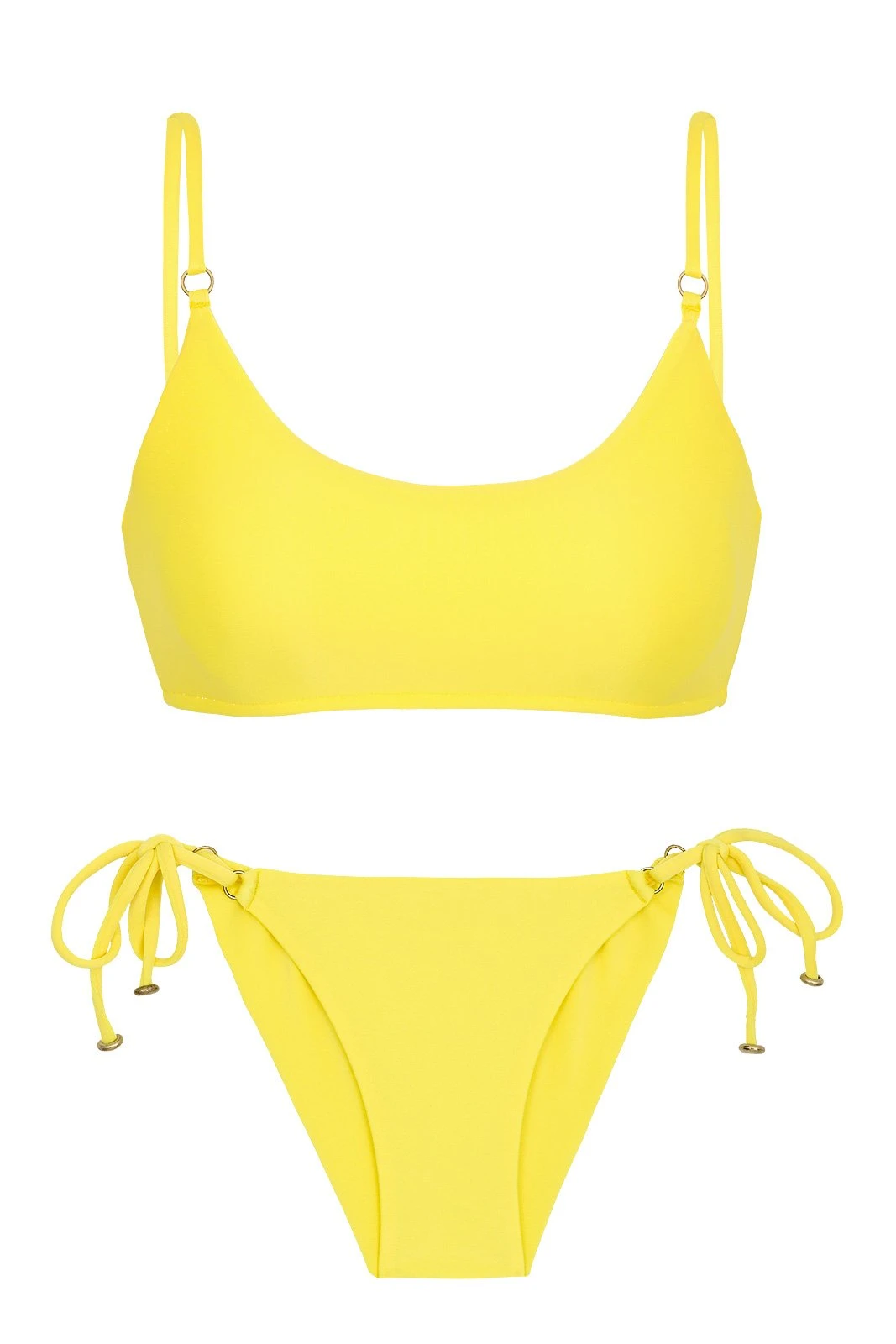 Description Lemon yellow side-tie bikini with bra top – STREGA BRA Rio de Sol