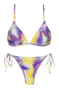 Description Purple & yellow tie-dye side-tie bikini – SET TIEDYE-PURPLE TRI-FIXO IBIZA Rio de Sol