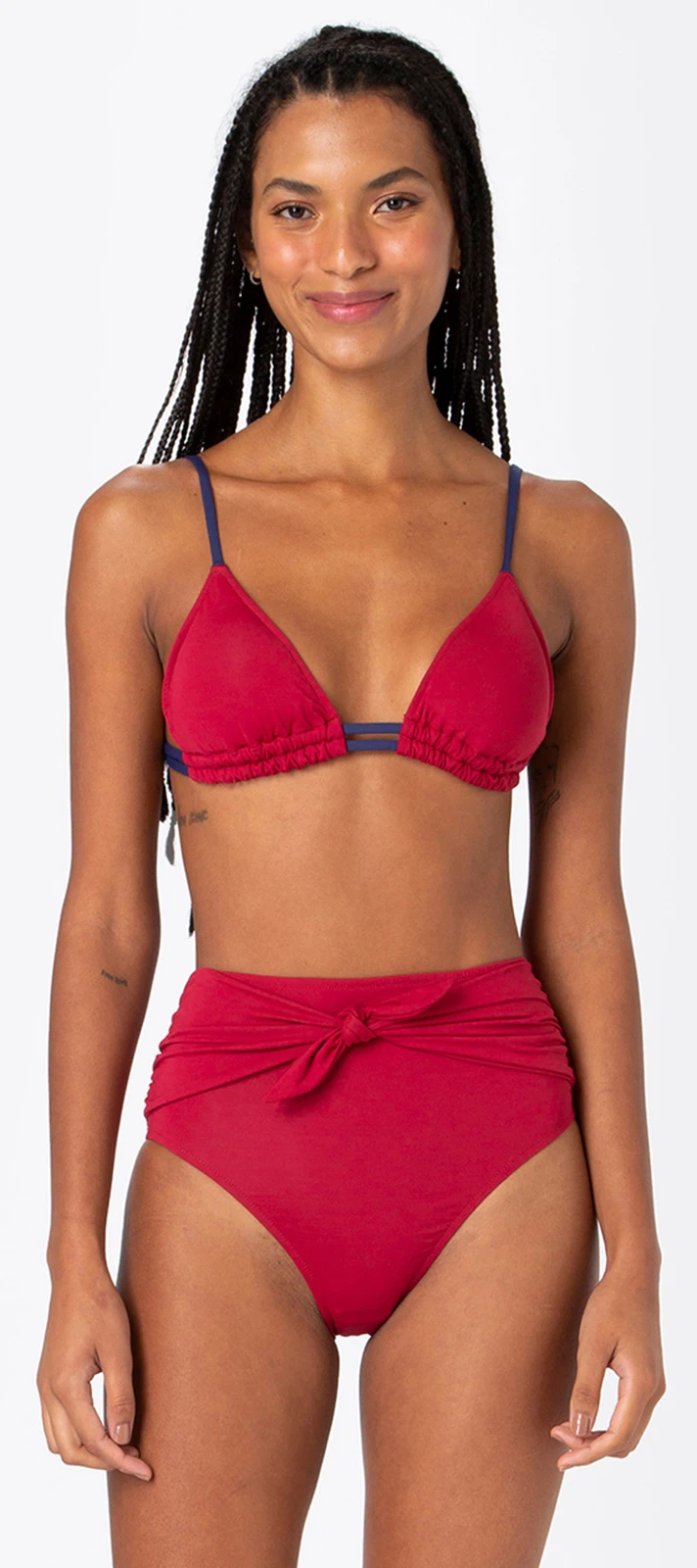 Description Raspberry red high waisted bikini with belted effect – RETRO AGATHA Salinas