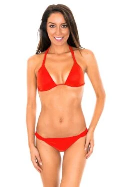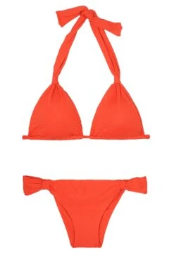 Description Red triangle halter top bikini, low-cut bottoms – AMBRA MEL URUCUM Rio de Sol