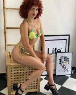 Description Side-tie scrunch bikini with green banana print – BANANA YELLOW FRUFRU Rio de Sol