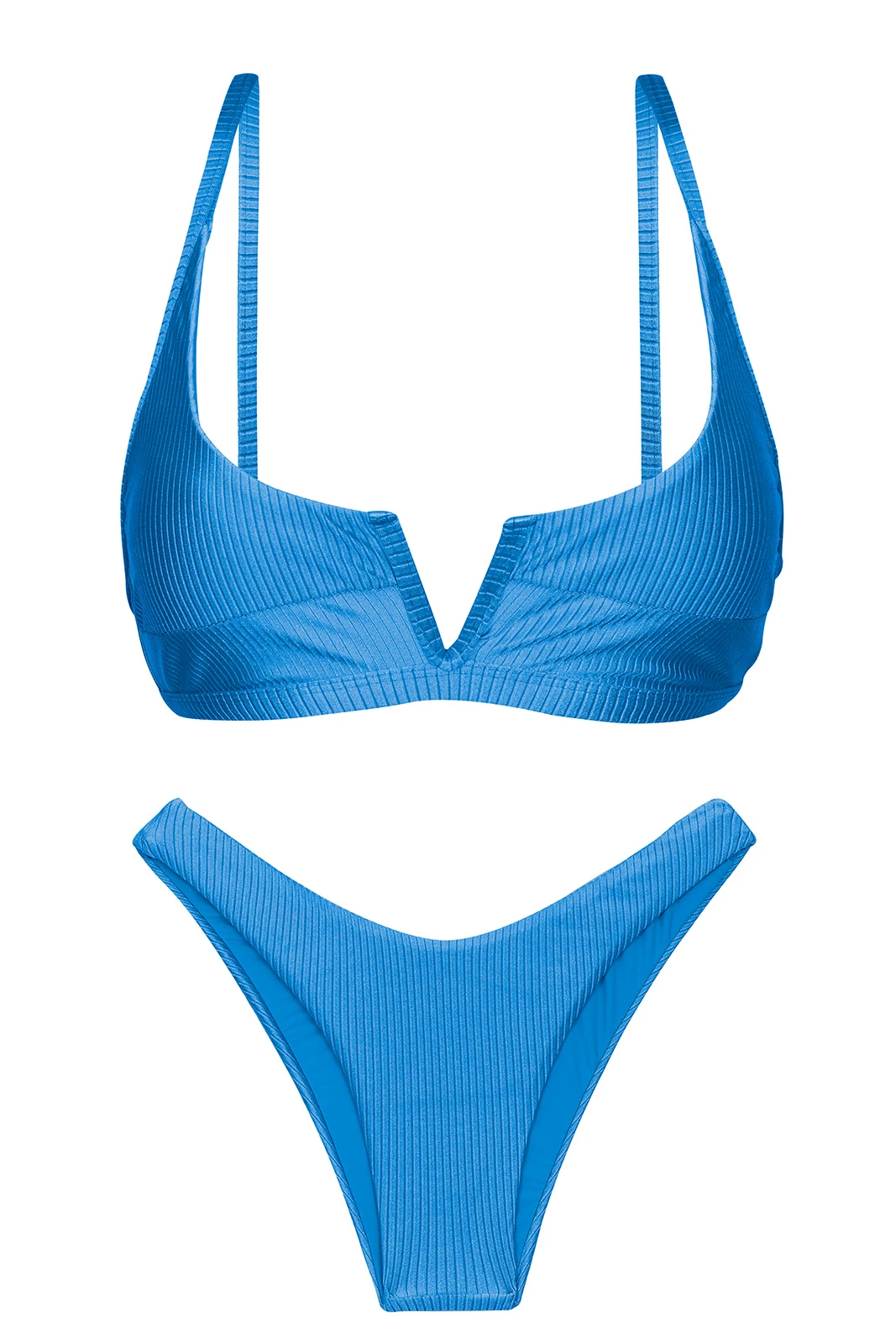 Description Textured blue high leg bikini with V bralette top – SET EDEN-ENSEADA BRA-V HIGH-LEG Rio de Sol
