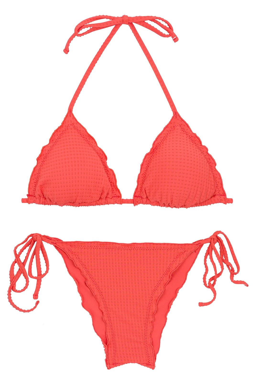 Description Textured coral scrunch bikini with wavy edges – SET DOTS-TABATA TRI FRUFRU Rio de Sol