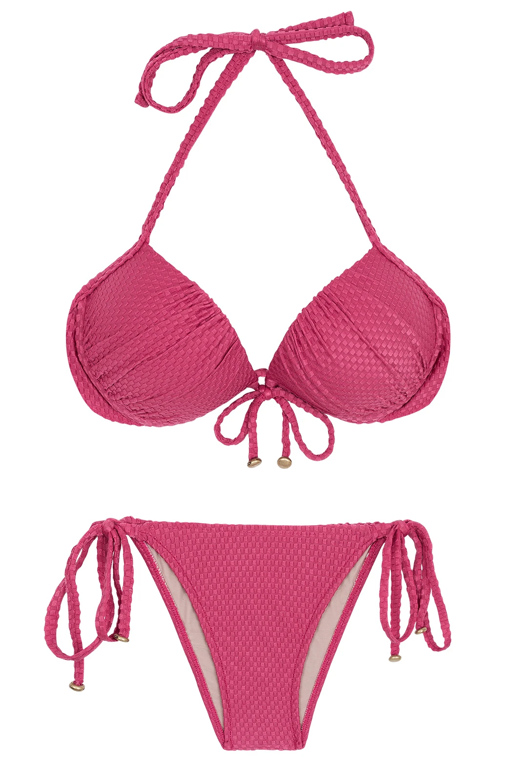 Description Textured fuchsia pink side-tie balconette bikini – CLOQUE LICHIA BALCONET Rio de Sol