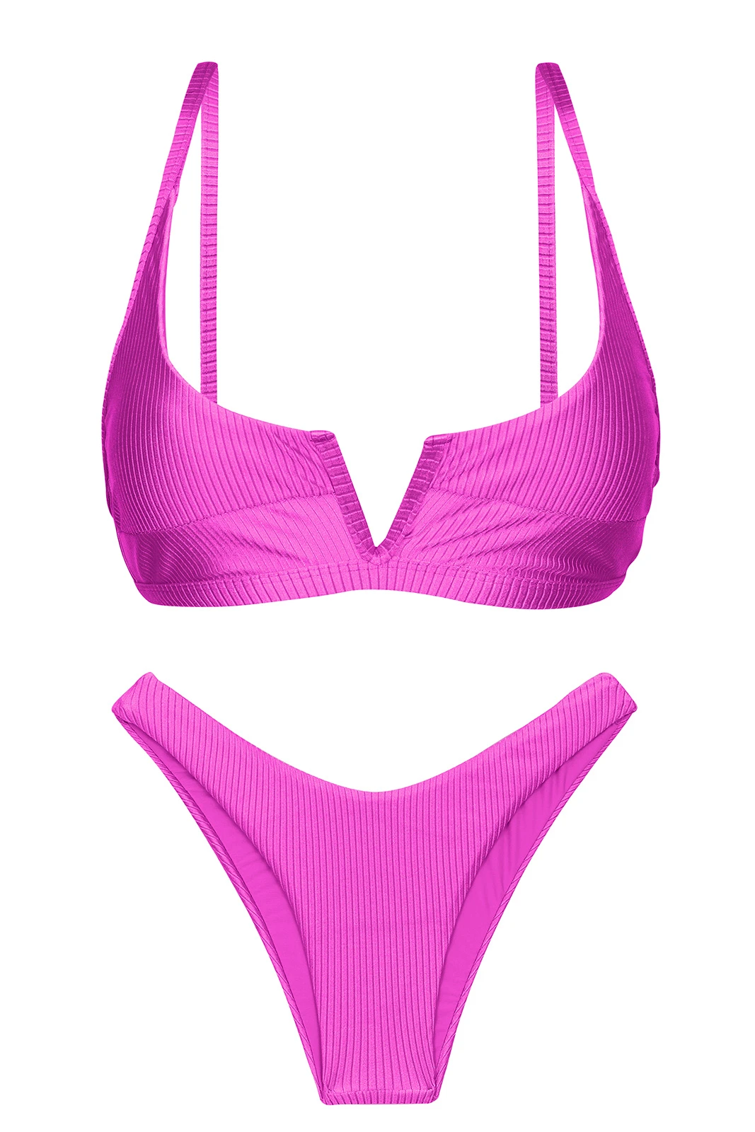 Description Textured magenta pink high leg bikini with V bralette top – SET EDEN-PINK BRA-V HIGH-LEG Rio de Sol