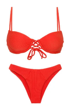 Description Textured red push-up balconette bikini with high-leg bottom – SET COTELE-TOMATE BALCONET-PUSHUP LISBOA Rio de Sol