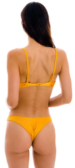 Description Textured yellow high leg bikini with V bralette top – SET EDEN-PEQUI BRA-V HIGH-LEG Rio de Sol