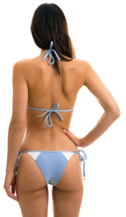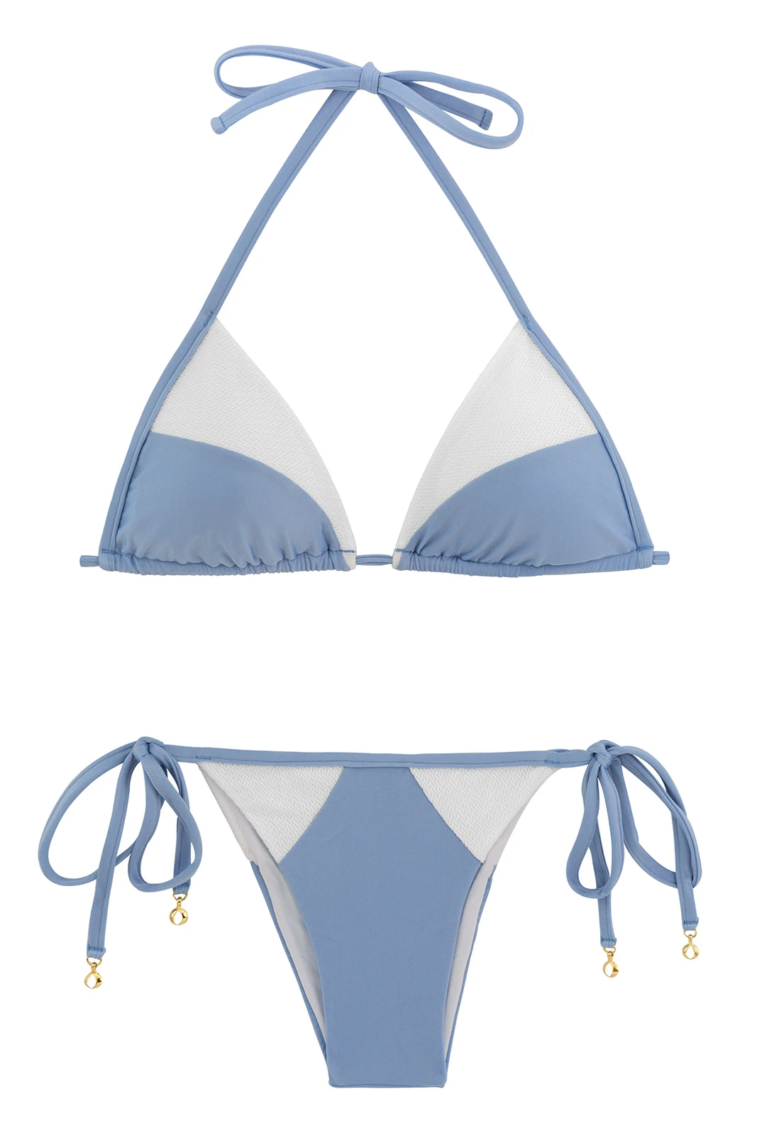 Description White & denim blue bi-material side-tie Brazilian bikini – GAROA WHITE TRI Rio de Sol